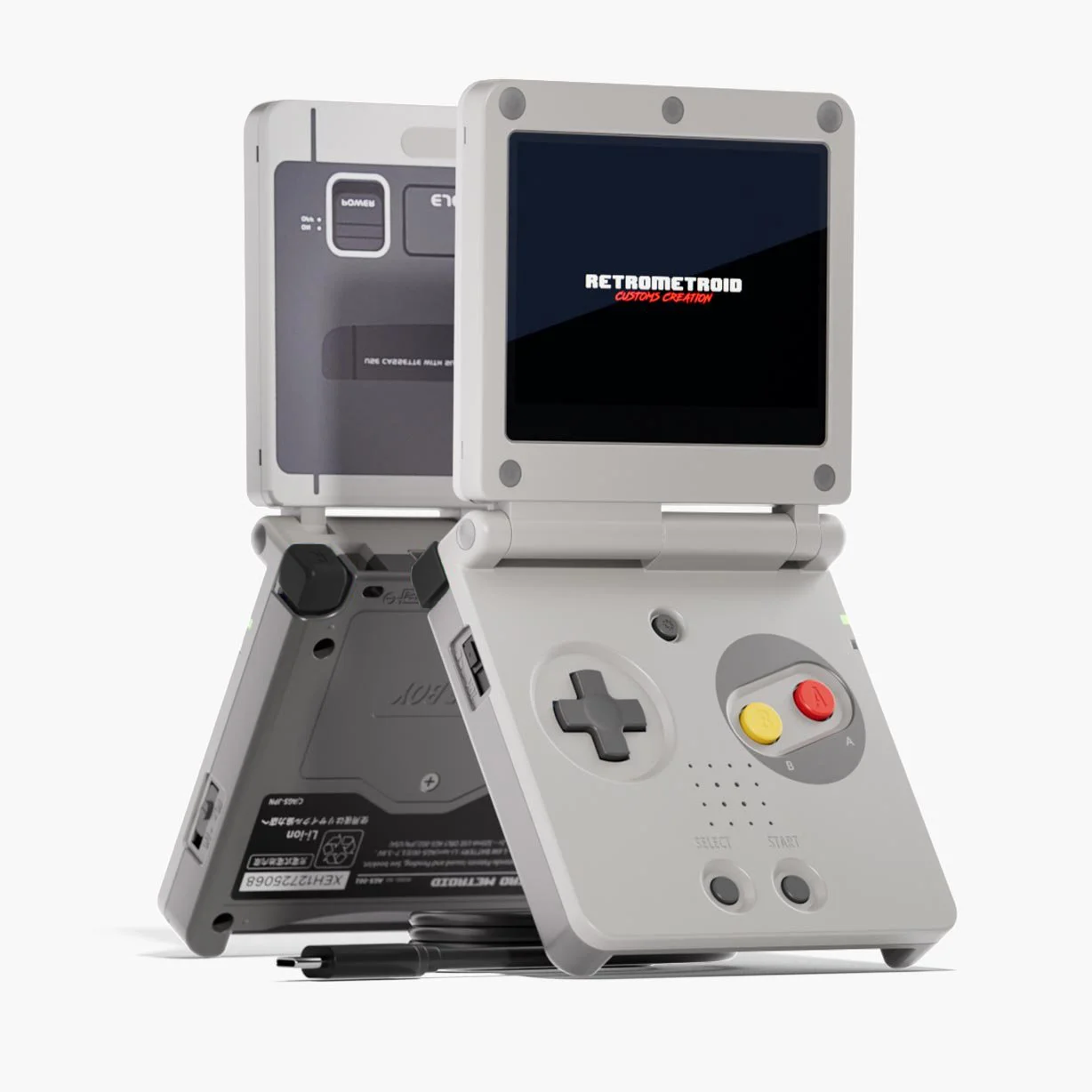 Gameboy Advance SP avec écran IPS (Remis à neuf), batterie USB-C avec câble de charge, pochette de transport, Vitre de protection en verre trempé et coque de protection.