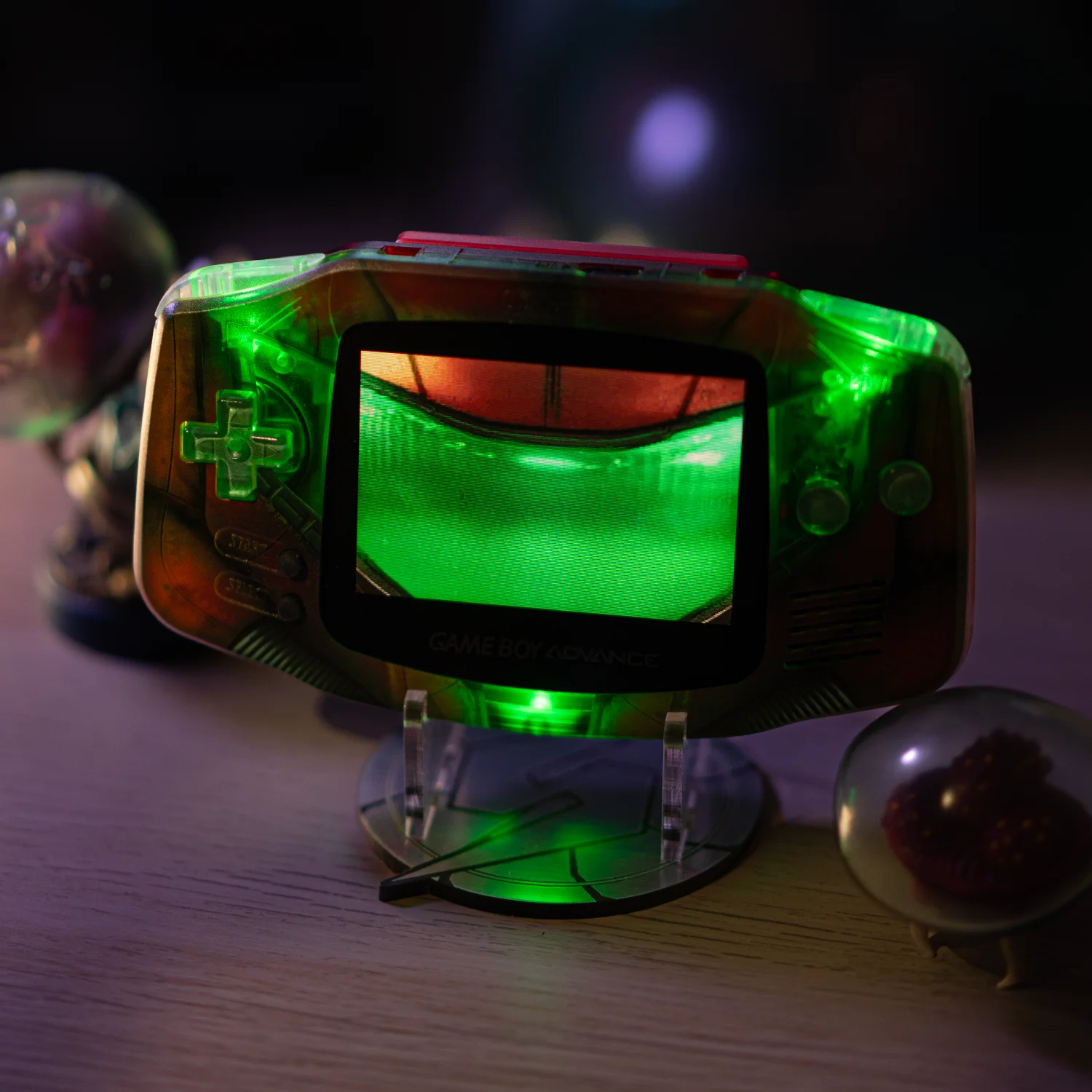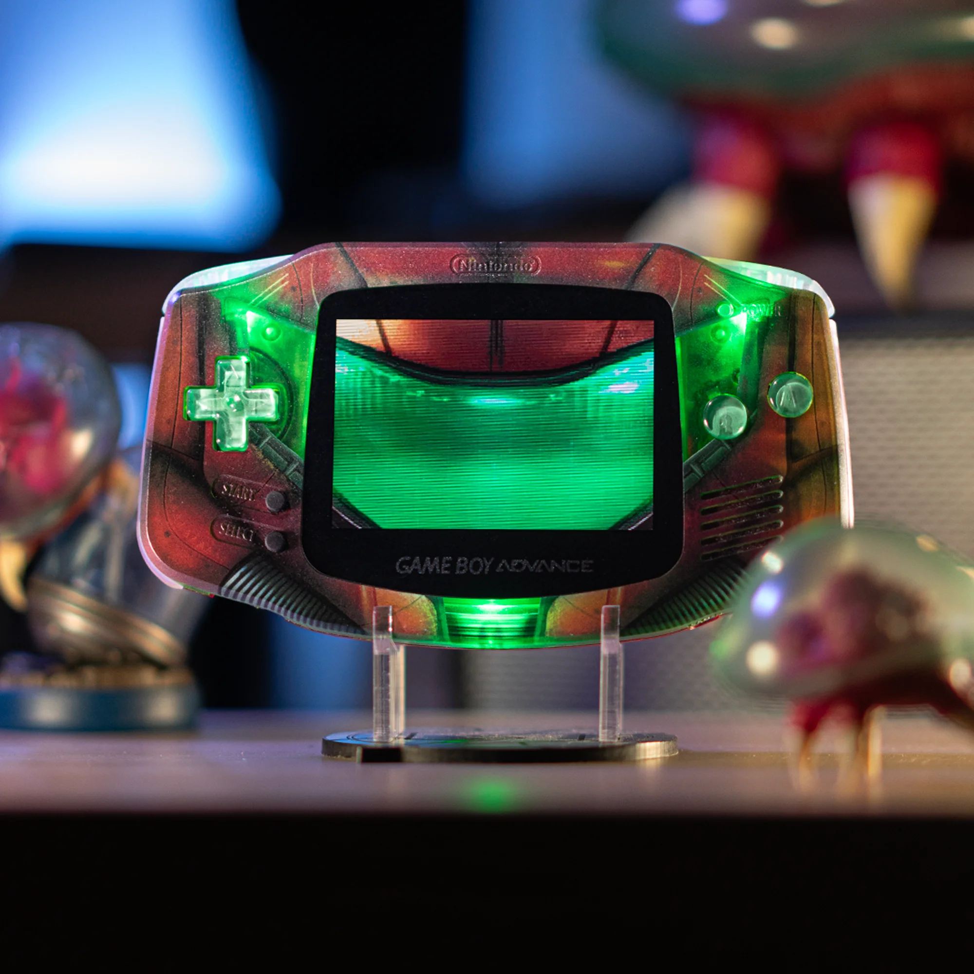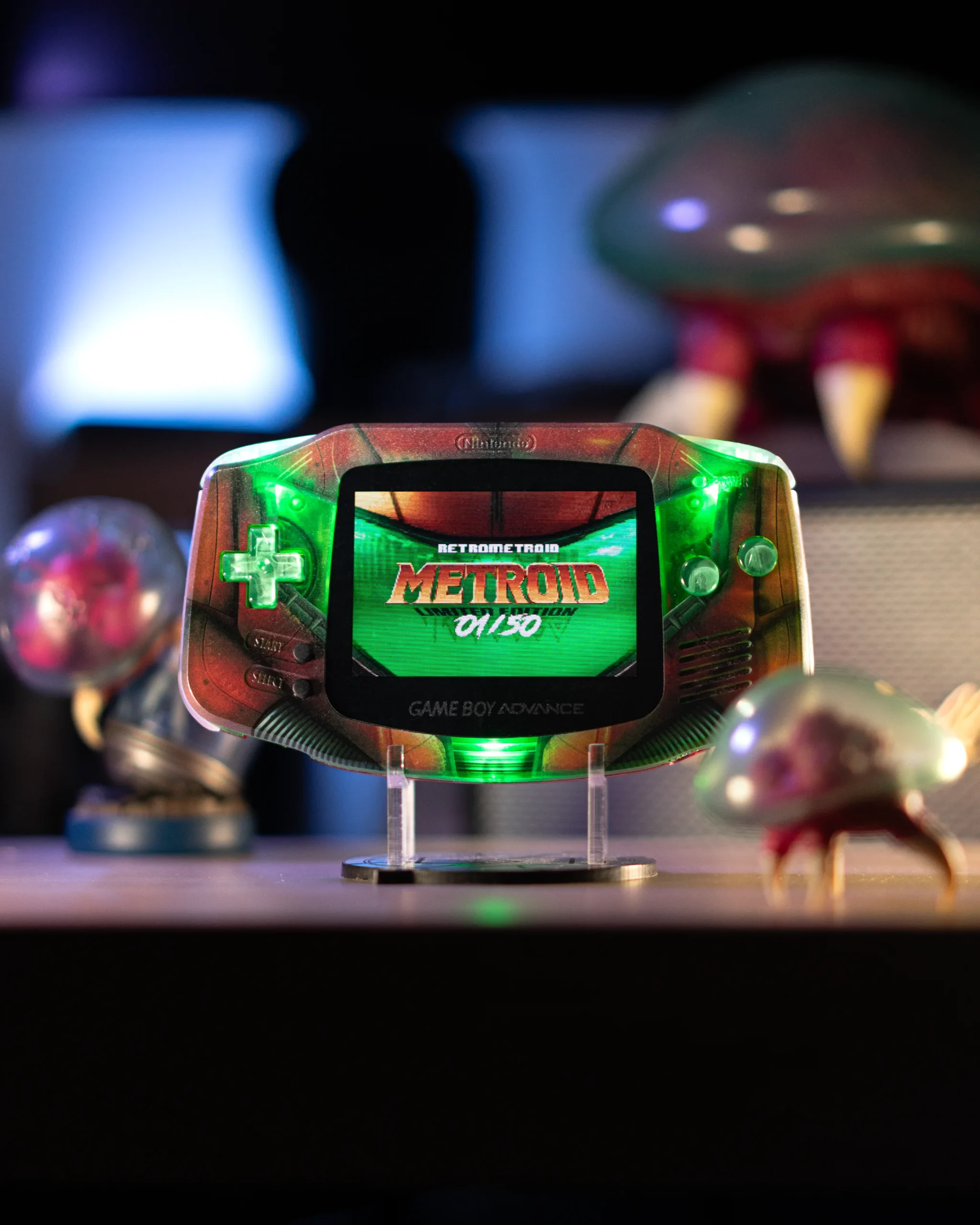 Gameboy Advance Coque Metroid, Écran Black IPS Laminated, Bouton Chrome Green Labfifteen, Pad black, LED Green, allumage start + select, Batterie 1800mAh (10h d’autonomie), Câble chargeur, Sacoche de protection – Retrometroid, Protection écran en verre trempé, Un présentoir Metroid unique fabriqué par PopCut, Une cartouche d’authenticité et numérotée. xx/50